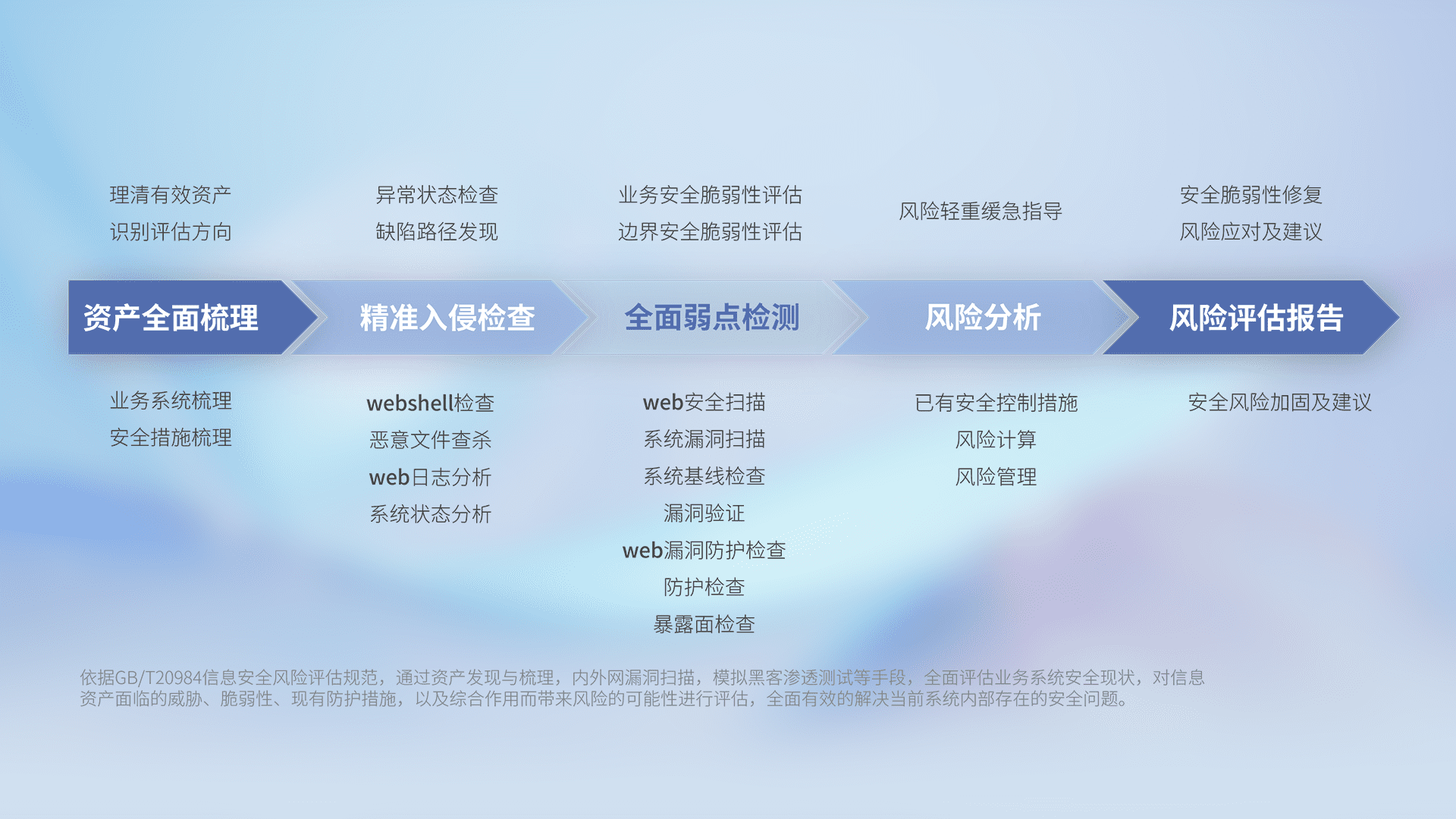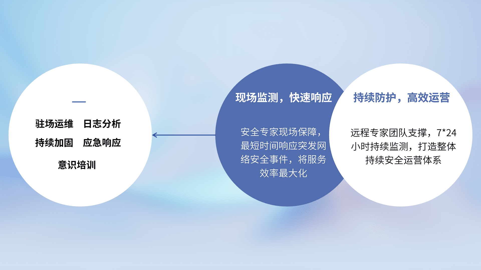 针对客户行业特性,,提供专属的一站式安全管理服务,,,,帮助客户全面感知网络空间威胁,,,,通过安全专家的线上、、、线下防护支持,,实现风险闭环,,,,将安全保障常态化,,为客户打造常态化安全运维运营服务。。。。